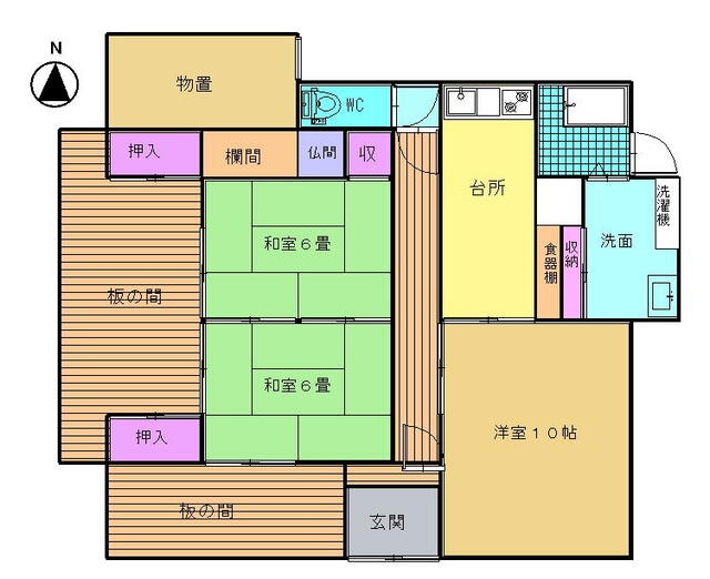 | 間取り | 3DK | 間取り内訳 | DK5畳 和6畳 和6畳 洋10畳 |