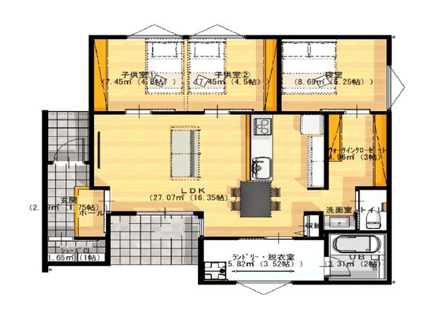 | 間取り | 3SLDK | 間取り内訳 | 洋5.2畳 洋4.5畳 洋4.5畳 S3畳 |
